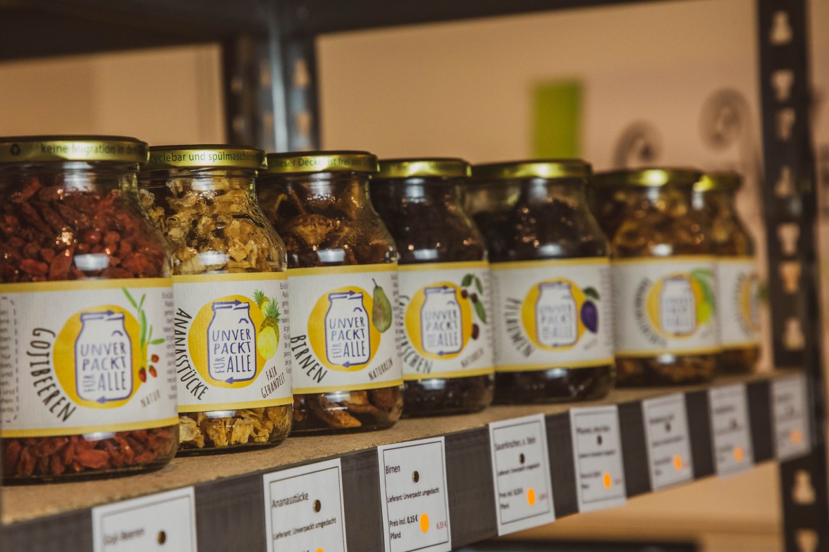 Am Besten achtet ihr beim Kauf von Mehrwegbehältern darauf, dass diese zu einem so genannten Pool-System gehören. Diese können einfach auf einer Rückfahrt zu einem beliebigen Hersteller zurückgebracht werden. Beispiele sind die MMP-Glasbehälter, die "Unverpackt für Alle" verwendet oder die ihr von Joghurtgläsern kennt. Bei Mineralwasser trifft das auf die Standard-Glasflaschen mit der Aufschrift "Leihflasche Deutscher Brunnen" zu und bei Saft gibt es Pool-Mehrwegflaschen des VdF (Verband der deutschen Fruchtsaft-Industrie). Diese verwenden auch unsere regionalen Apfelsaft-Lieferanten sowie der Saft-Lieferant Voelkel.