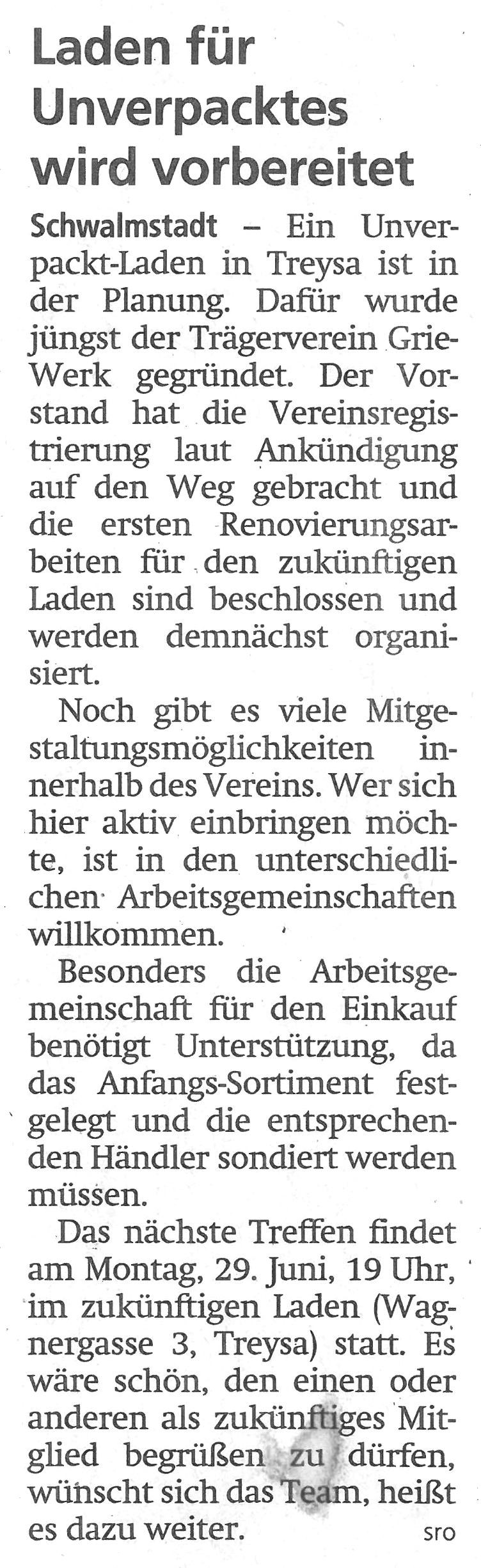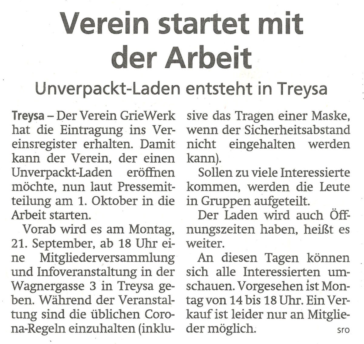 Hier sammeln wir Berichte aus der lokalen Presse, die bereits über das GrieWerk erschienen sind. Viel Spaß beim Stöbern!