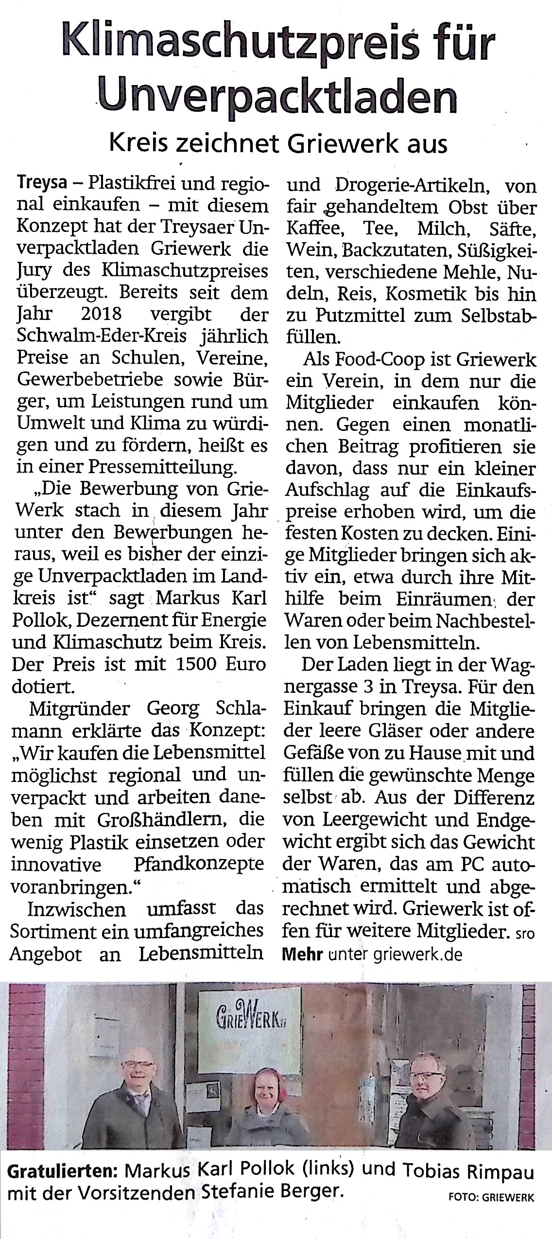 Klimaschutzpreis für Unverpackt-Laden - Kreis zeichnet Griewerk aus