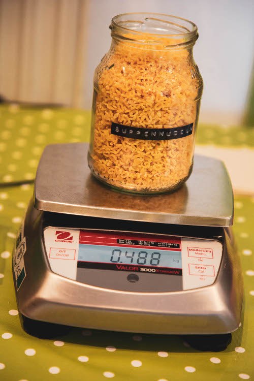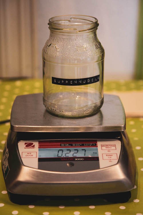 Erster Schritt: Behälter leer wiegen und Gewicht notieren.