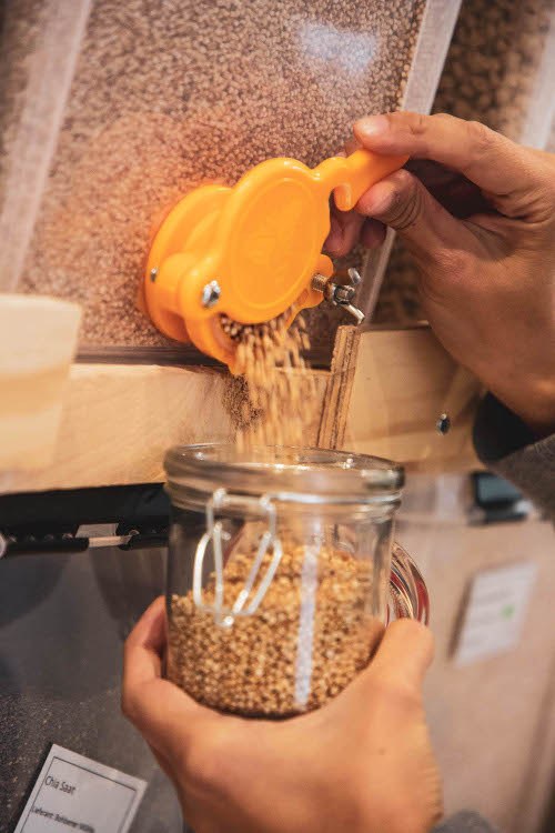 Dazu überweist du einen beliebigen Betrag als Einkaufsguthaben. Für deinen Einkauf solltest du dir Dosen, Gläser oder sonstige Behälter mitbringen, in die du die gewünschten Waren abfüllen kannst. Keine Sorge: Solltest du spontan noch weitere leckere Lebensmittel entdecken, stehen genug leere Gefäße in unserem Leihregal bereit.